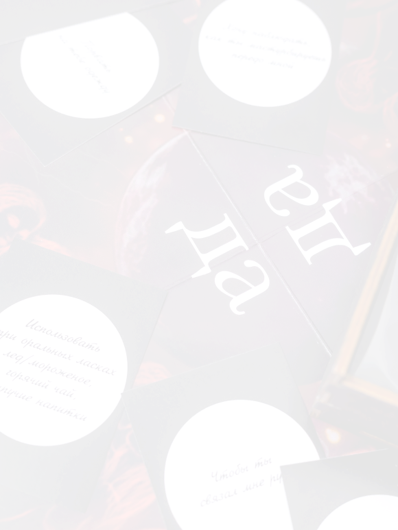 «ДА», «МОЖЕТ БЫТЬ» и «HET», а также 340 карточек для мужчин и женщин с различными сексуальными фантазиями. Выберите карточки, которые вас интересуют, и раскладывайте их на игровом поле.